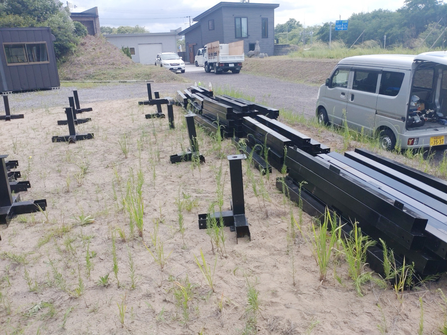 □-100*100の支柱、梁で製作してます。